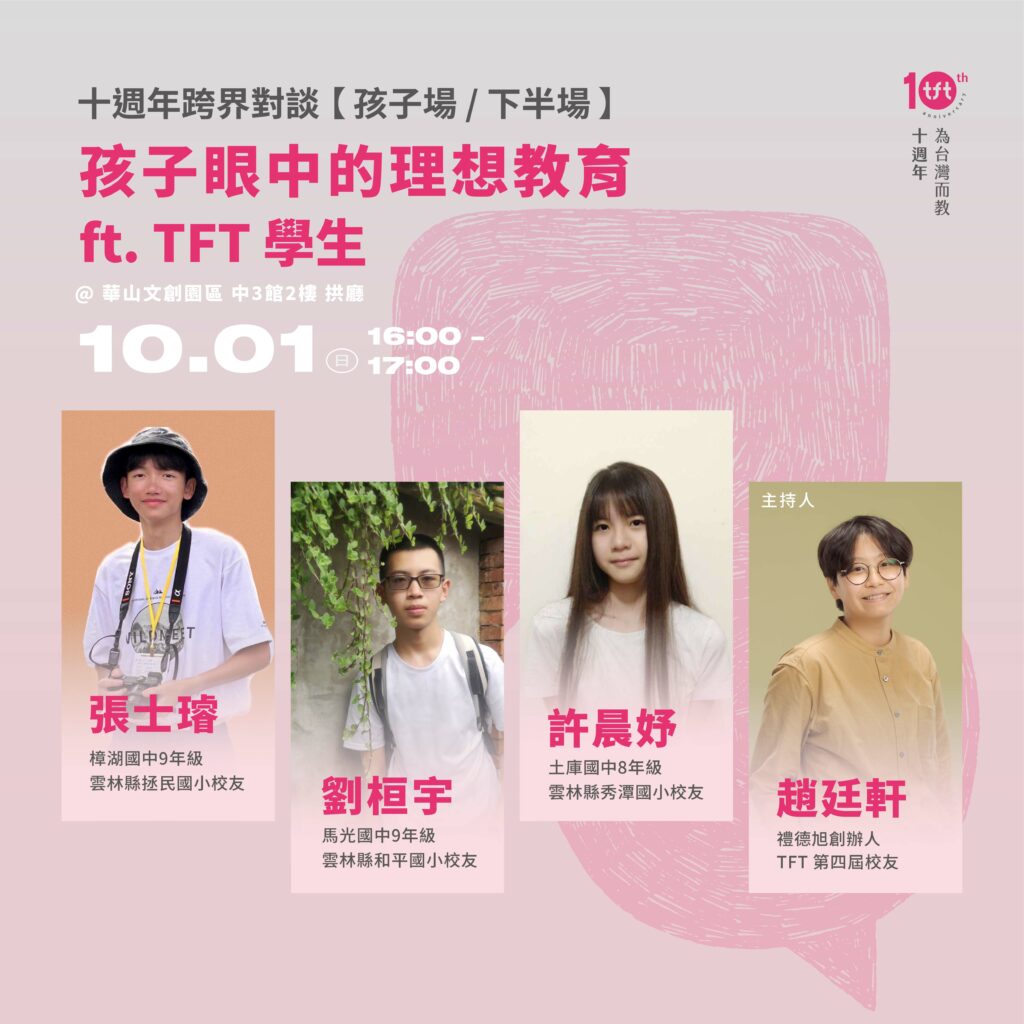 首次邀請 TFT 計畫成員陪伴的孩子,分享他們對教育的看法,孩子心中理想的教育長什麼樣子?他們又是怎麼看待自己的成長與未來的理想?