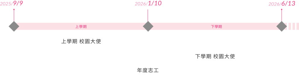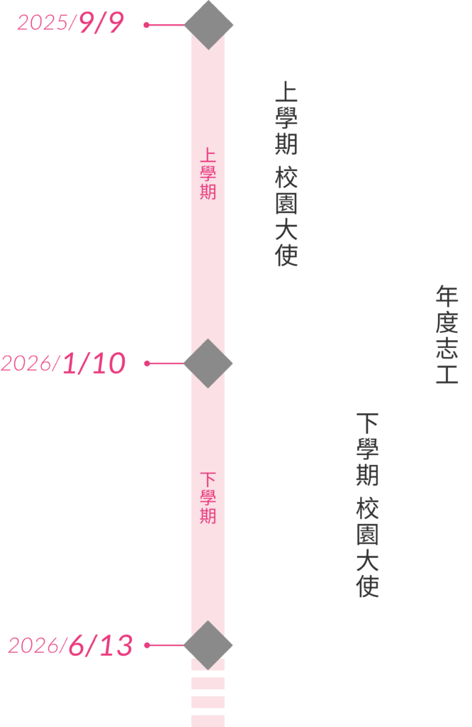 - 本次志工職缺以學年為主,服務期間為:2025/9/9 ~ 2026/6/13。