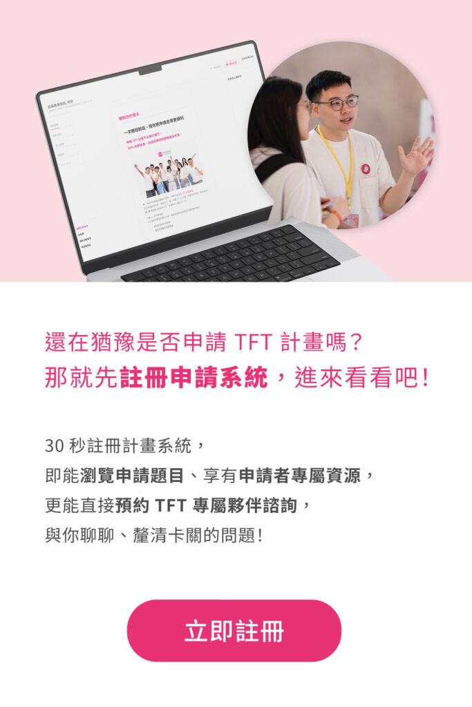 計畫結束後,TFT 校友們可以透過申請相關的創業基金,加速專業發展與行動串連。