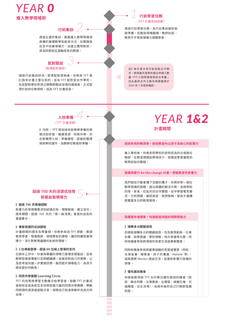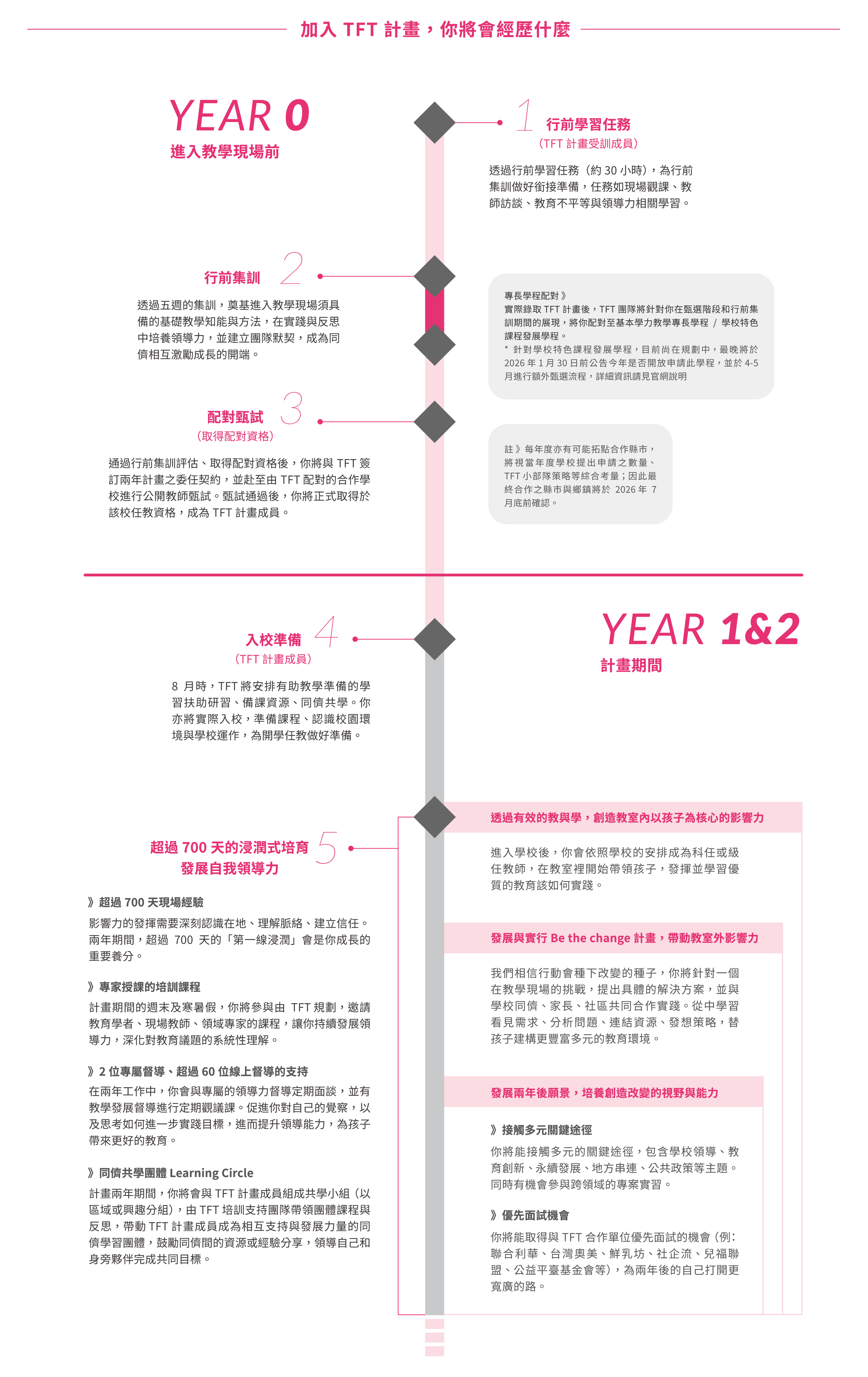 註1:代課代理身份無法自行選擇。TFT 主要會以合作學校的師資需求進行媒合配對。